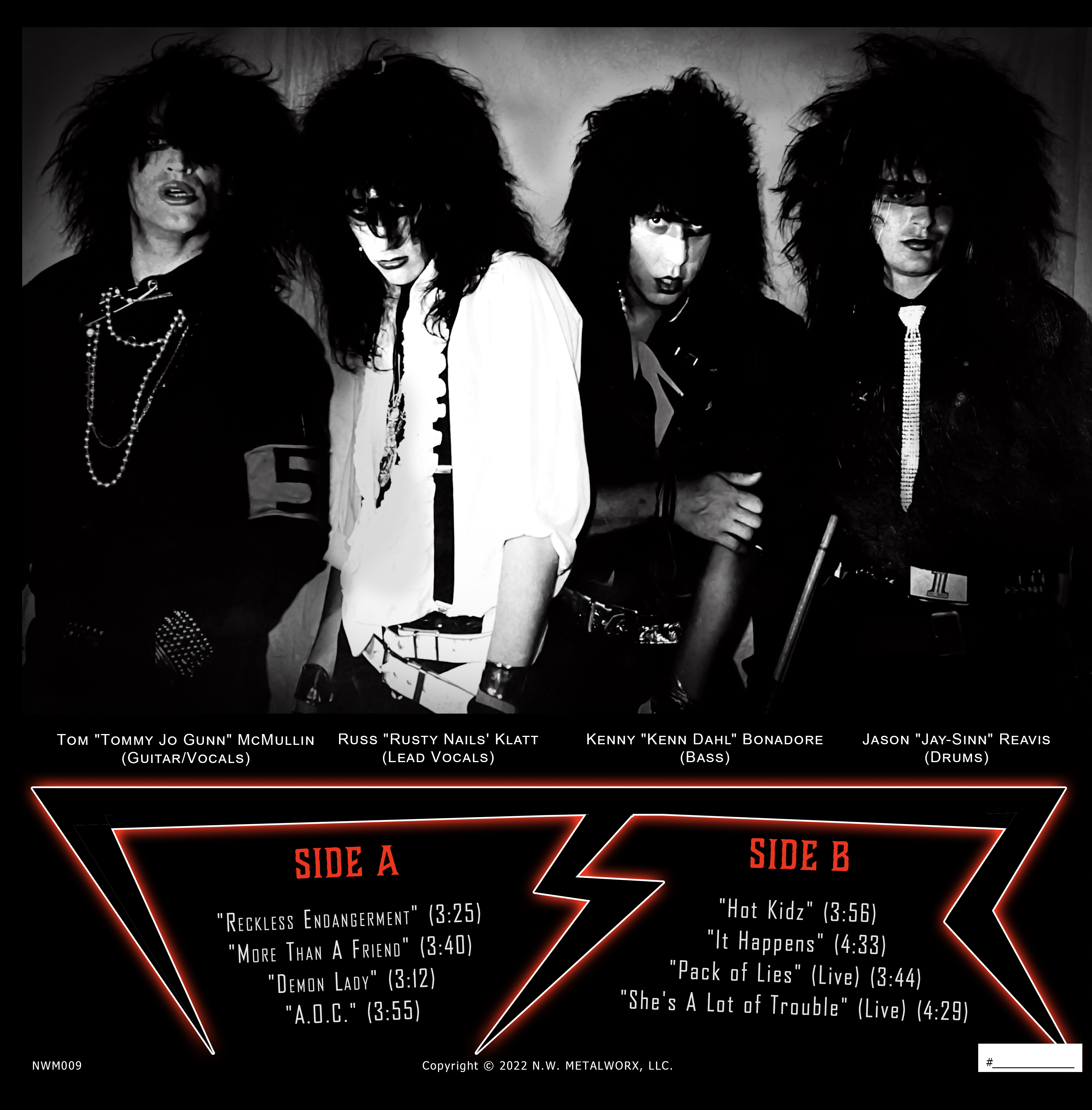 Debut album release from 1980's Glam/Goth Seattle Heavy Metal band Slaughter Haüs 5 - RECKLESS ENDANGERMENT - from 2022 from NW Metalworx Music. Blends influences of KISS, early Motley Crue and Ratt, Hanoi Rocks, etc. and features members of War Babies, Sleep Capsule, Rebel and Palooka. Includes their rare 1985 self-released 7", their 1986 four-song demo tape and two live tracks from 1987. Includes a full-color gatefold insert with liner notes, info and rare photos and images.