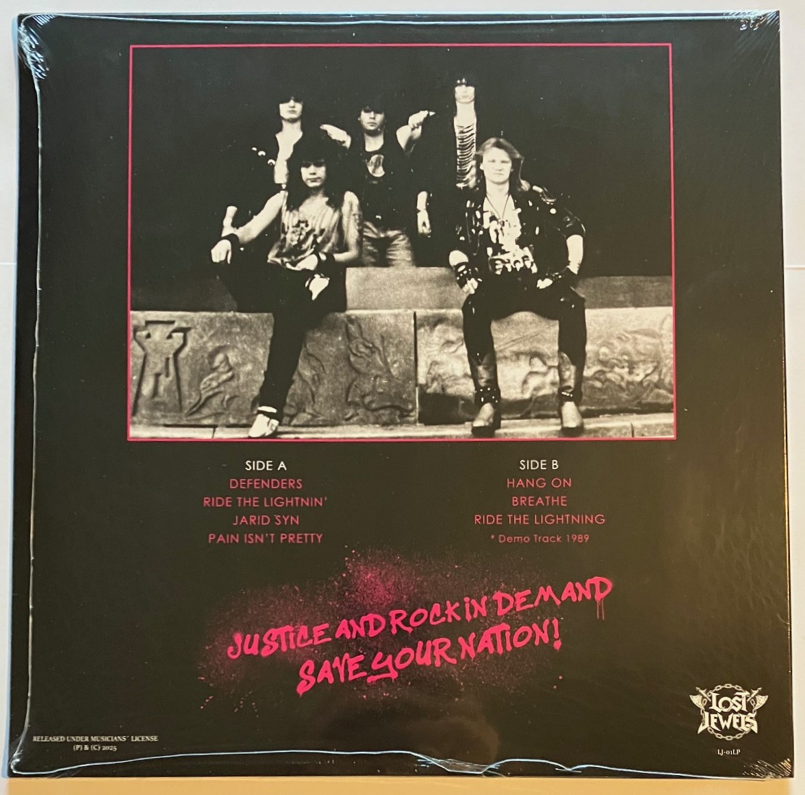 Brand new Limited edition Import LP of US Heavy Metal band JARID SYN - SAVE YOUR NATION: DEMO 1990 - from Lost Jewels in Spain. Features the rare 1990 6-song demo tape plus a bonus 1989 demo track as well. Sealed/new copies in the shrinkwrap/plastic.