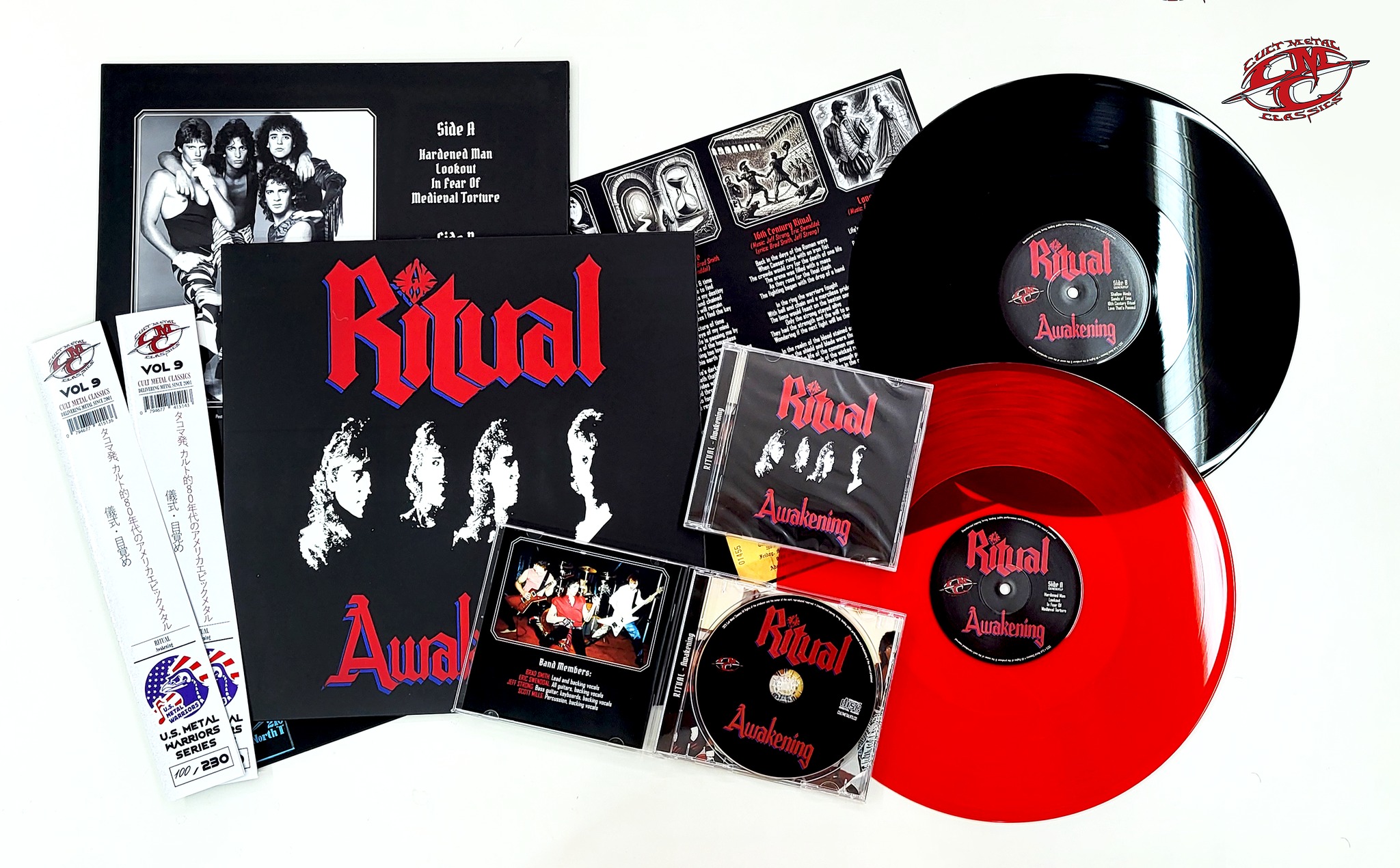 New Import LP from mid-`80s Tacoma, WA. Heavy/Power Metal band RITUAL - AWAKENING - from Cult Metal Classics from 2025. Includes the 8 songs from their very rare 1986 self-released cassette album newly remastered. In the vein of early QUEENSRYCHE, FATES WARNING, etc. Mint new copy in a resealable plastic sleeve with an OBI strip and an insert with liner notes, etc.