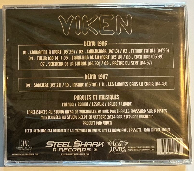 New Import CD from French heavy metal band - VIKEN - DEMOS `86/`87 - from Lost Jewels and Steel Shark Records from 2025. Includes their rare 1986 and 1987 demos remastered. Brand new copy sealed in shrinkwrap/plastic.