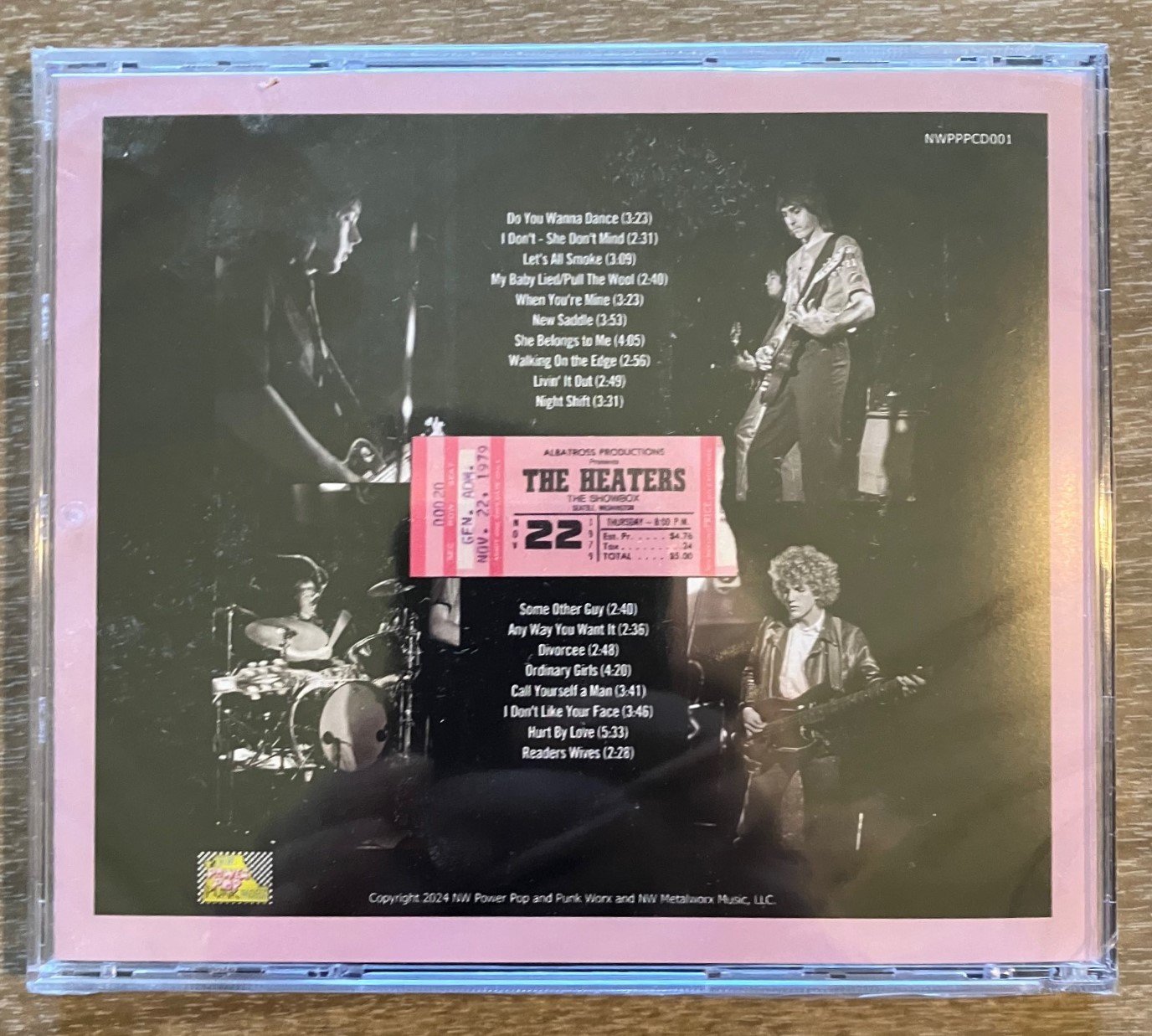 Brand new limited edition CD LP of a live album from the legendary Seattle power-pop band from the late `70s and early `80s. THE HEATS - LIVE AT THE SHOWBOX 1979 - from NW Power Pop and Punk (NWPPP). This is one of only 300 CDs to be done. Features the complete live show from Thanksgiving 1979 when the band was still calling themselves THE HEATERS. Also includes a booklet with liner notes on the band and images and photos.