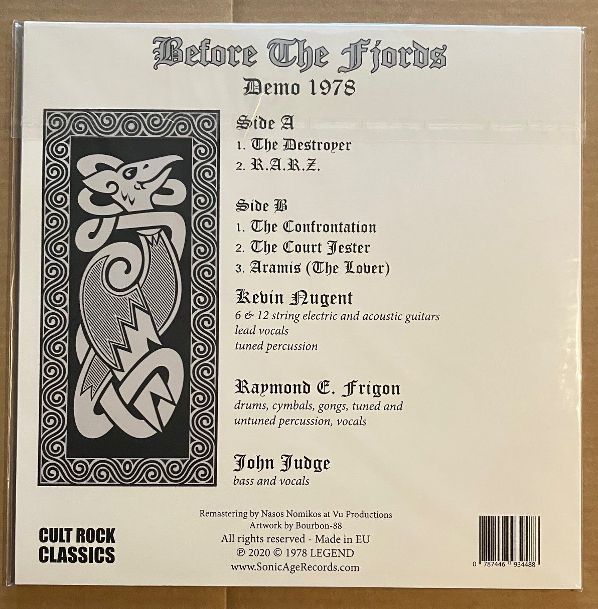 Brand new copy of the Import EP featuring the 1978 demos from Connecticut Proto Metal/Prog Metal/Hard Rock band LEGEND - BEFORE THE FJORDS - from Cult Metal Classics from 2020. Black and White colored vinyl limited to only 100 copies. New, unplayed copy in a resealable plastic sleeve