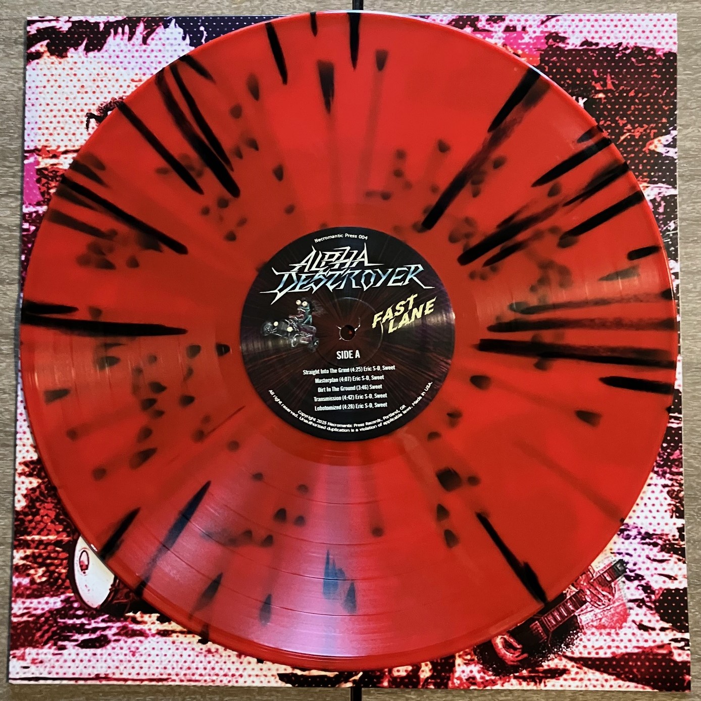 Brand new Limited Edition heavy metal LP from the new supergroup band ALPHA DESTROYER - FAST LANE - from Necromatic Press records from 2025. Featuring members of CRASH DIET, BUCK CHERRY, DEAD CONSPIRACY, HOT BOY, SLEEPLESS, GOLDFINGER, HARLOT, etc. Comes in 4 different color vinyl variants - Red with black splatters, Lime Green with light smoke, Clear with white and black splatters and Black Vinyl. Only 100 copies of each color were made so pretty limited. Brand new copies in a resealable plastic sleeve.